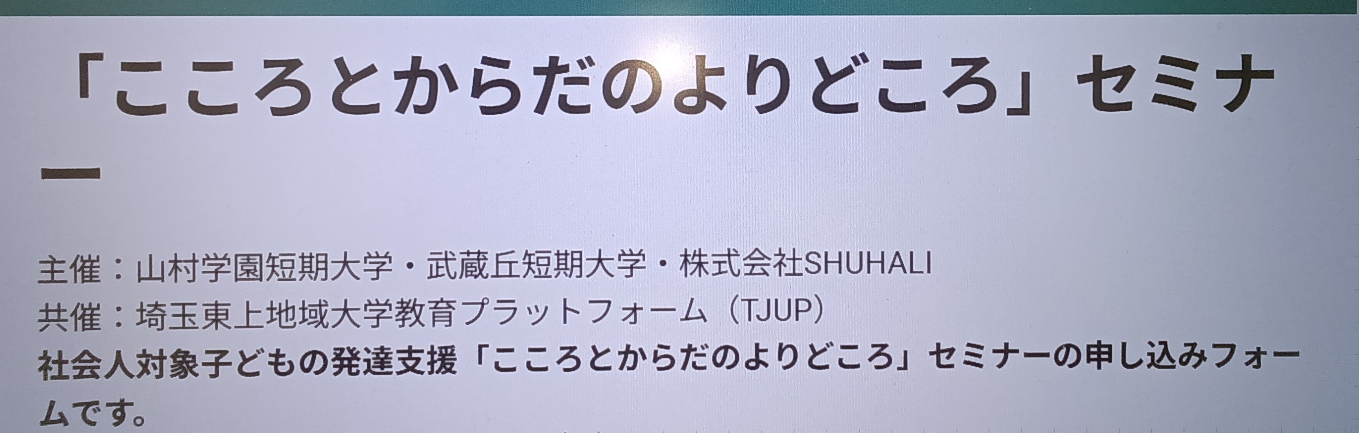 【TJUPイベント】TJUP共催 社会人対象キャリア形成プログラム 子どもの発達支援「こころとからだのよりどころ」セミナーの開催について