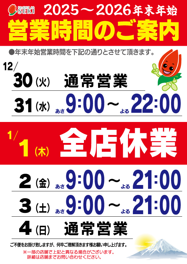 2025-2026年末年始の営業時間のお知らせ